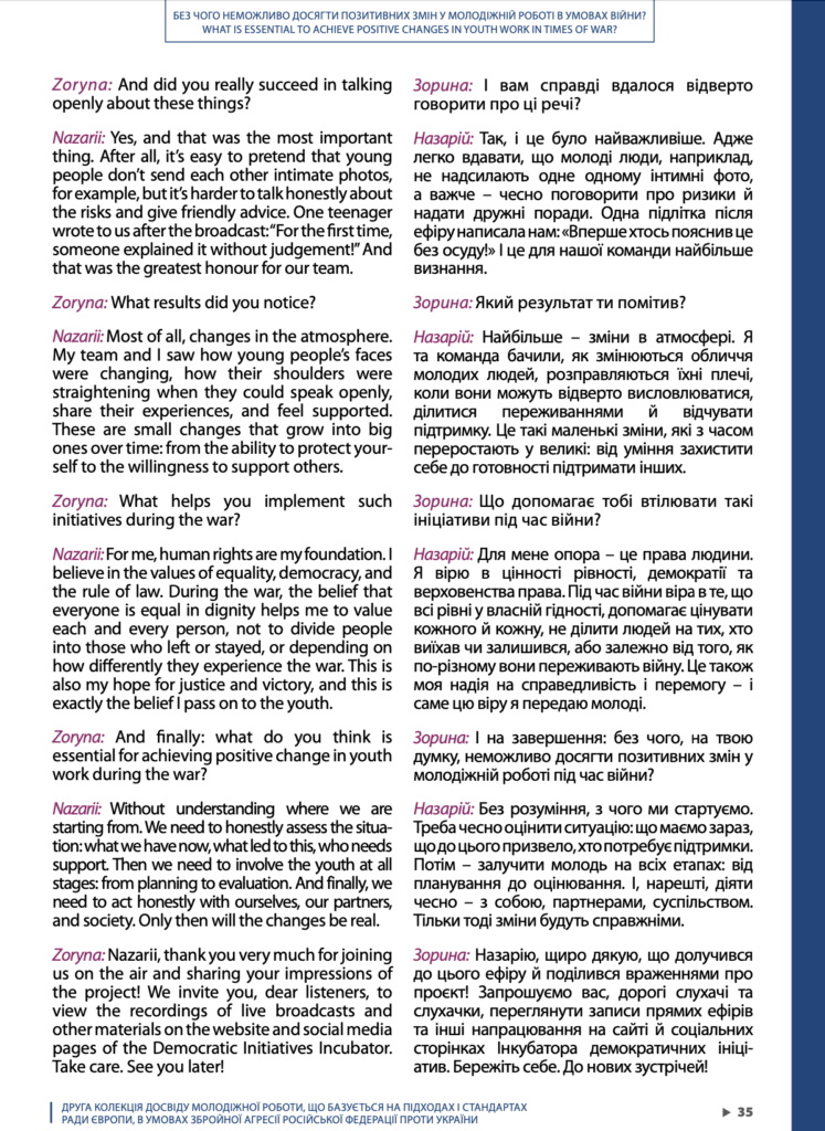 Опис практики підготував член Правління ГО «Інкубатор демократичних ініціатив» Назарій Боярський. Він пояснює, що потрапляння до збірки Ради Європи — це не лише визнання, а й підтвердження того, що наші підходи відповідають міжнародним стандартам молодіжної роботи.