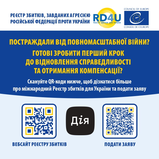Заяви подаються до Реєстру збитків України (RD4U) в електронному вигляді через веб-портал Дія.